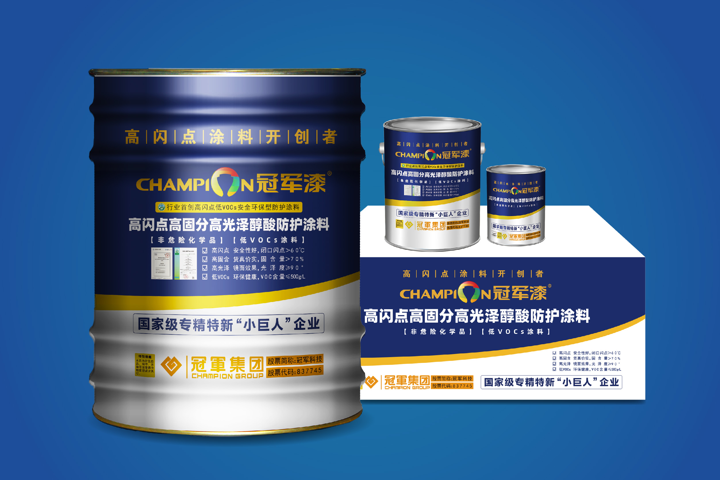 江蘇冠軍科技集團股份有限公司創建于1999年,經過創業團隊20年的努力奮斗,集團已成為國內著名的、以工業涂料研發、生產、銷售為一體的高科技企業。2016年6月30日,冠軍集團在全國中小企業股份轉讓系統掛牌(股票代碼:837745)。