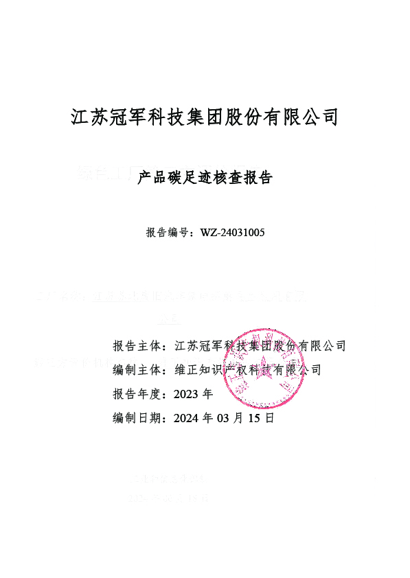 江蘇冠軍科技集團股份有限公司 產品碳足跡核查報告
